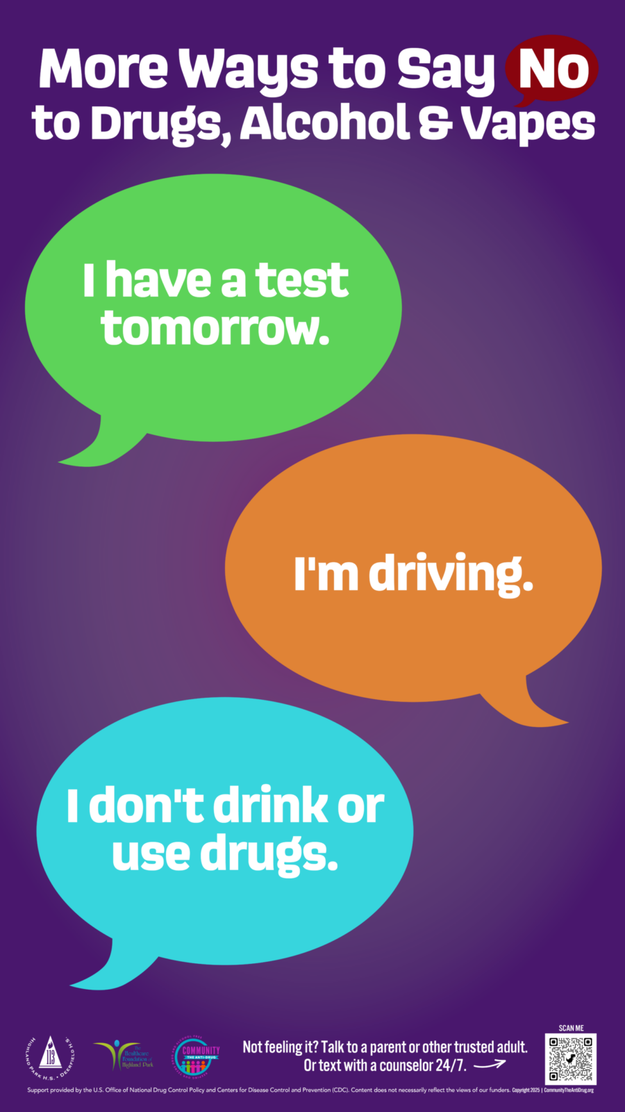 - To request a presentation/workshop on creating effective drug prevention materials that are positive, inclusive and empowering, contact info@communitytheantidrug.org or 224-765-CTAD.